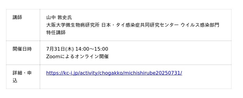 インフラ未整備の実験室で暑さや蚊と戦いながら顕微鏡を覗いている風景を想像されがちな熱帯地域での感染症研究施設。タイにある大阪大学微生物病研究所の研究拠点をZoomでのぞいて、熱帯感染症研究新たな気づきをお届けます。