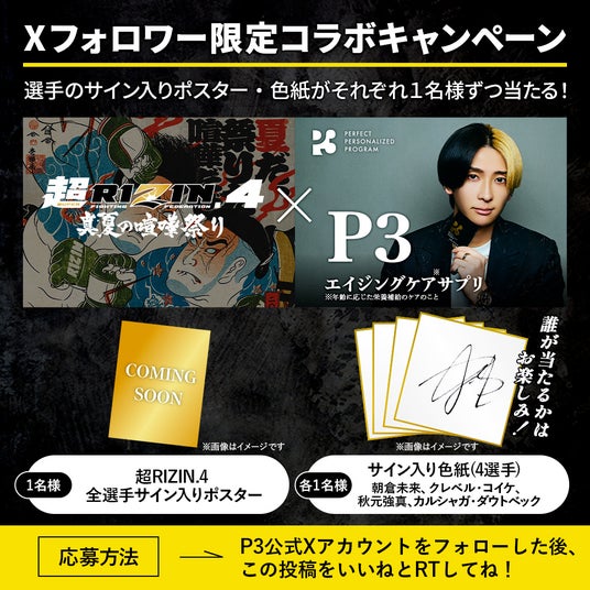 ヒカル監修 P3 × 超RIZIN.4 真夏の喧嘩祭りコラボキャンペーン開催!超RIZIN.4観戦チケットや豪華サイン入りP3・グッズが当たるチャンス!