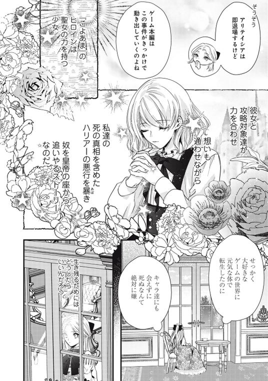 イケメンたちに囲まれながら運命を変えようと奮闘するアリテイシアの姿、