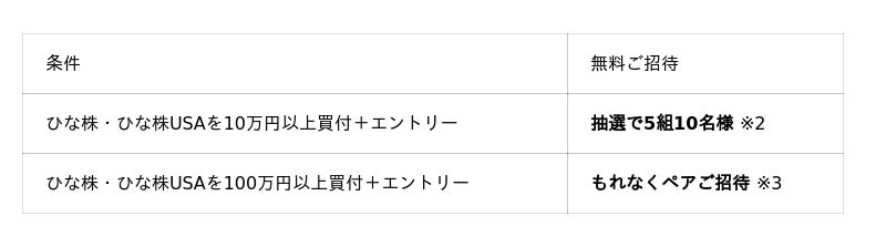 1.2025年7月1日(火)~2025年8月29日(金)※1ひな株・ひな株USAの買付金額に応じて、