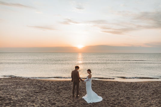 黄昏に永遠を。夕焼けが彩る、2人だけのラブストーリー。海と空が溶け合うブライダルロケーションフォト