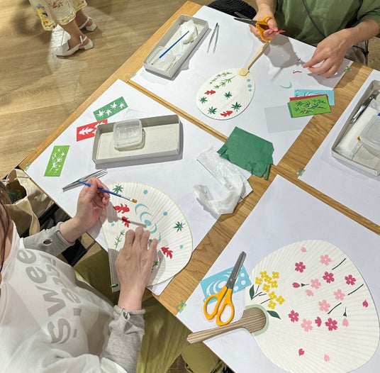 ● 内容 京都のうちわに触れ、その特徴を感じていただきます。扇面に切り絵を施した和紙を貼るオリジナルの絵付け体験とともに、環境にも優しい自分だけの夏の風物アイテムを作っていただけます。