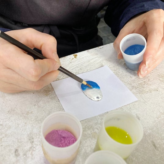 ● 内容 純銀の板の上にお好みの色を焼き付けて、ペンダントまたはストラップを制作いただきます。完成品は当日お持ち帰りいただけます。
