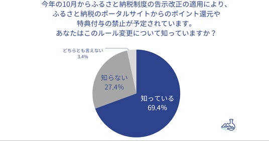 2025年10月から、ふるさと納税ポータルサイトが寄付者に対して独自に付与していたポイント還元や特典(次回利用時に使える割引ポイントやギフトなども含む)が禁止されます。このルール変更について「知っている」と回答した人は全体の69.4%にのぼり、ふるさと納税経験者の76.5%が9月末までにいわゆる"駆け込み寄付"を予定していることがわかりました。