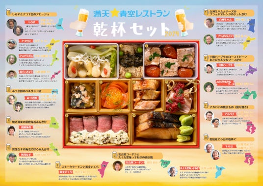 番組内で紹介される「乾杯セット」が当たる「満天☆青空レストラン」コラボキャンペーンを同日から実施し、対象商品をご購入のお客様の中から、抽選で100名様に日本各地のうまい食材をギュっと詰め込んだ「乾杯セット」が当たります。