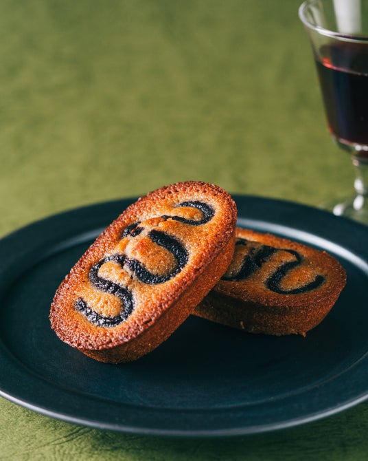ワイン澱とセミドライいちじくでジャムを炊き、澱を混ぜ込んだ生地の上に絞り焼き上げた、ワインの風味がフルーティーに香るフィナンシェ