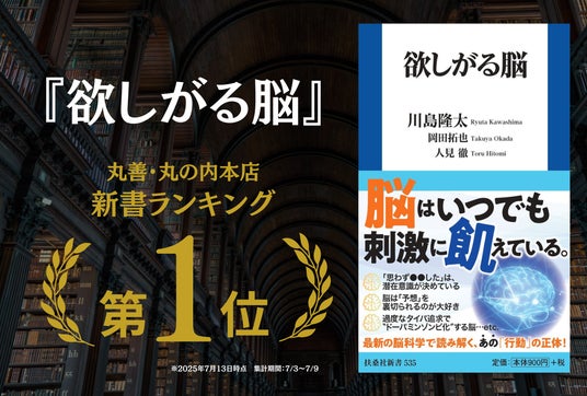株式会社NeUの取締役を務める川島隆太博士と、NeUのニューロマーケティングチームのメンバーである岡田拓也・人見徹による共著書『欲しがる脳』(扶桑社新書)が、丸善・丸の内本店の新書ランキングで第1位を獲得いたしました(集計期間:2025/7/3~7/9)。