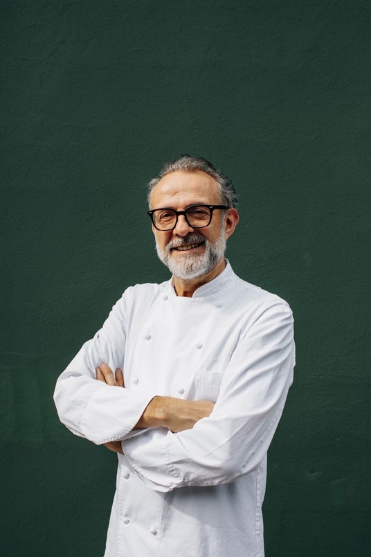 1995年、故郷モデナにて「オステリア・フランチェスカーナ」を開業。2012年にミシュラン三つ星を獲得し、2016年および2018年には「世界のベストレストラン50」にて第1位に選出されるなど、世界的な評価を確立した。