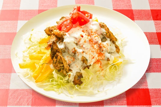パンチョの期間限定トッピング「ケバブチキン」は一口食べれば異国情緒あふれる味わいが広がる、まるで専門店のケバブそのもの。ジューシーに焼き上げたチキンケバブを主役に、シャキシャキの千切りキャベツと食べ応え満点のホクホクのフライドポテトを敷き詰めました。彩り豊かな角切りトマトと特製のニンニク香るヨーグルトソースは味にアクセントと清涼感をプラスするだけでなく、ナポリタンとの融合を果たす大切な役目を担っています。