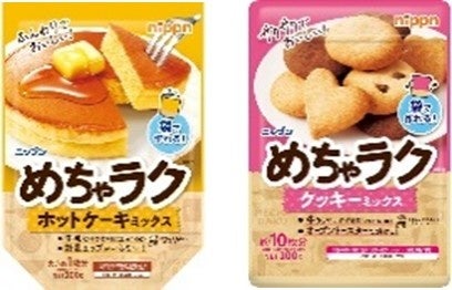 「ニップン めちゃラク」シリーズは、手軽に楽しくおいしいお菓子作りを応援するプレミックスです。2019年秋に発売した「ホットケーキミックス」からスタートし、現在は「クッキーミックス」「カスタードクリームミックス」など全7品をラインアップしています。