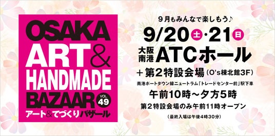 関西最大級のアート&ハンドメイドイベント「OSAKAアート&てづくりバザールVOL.49」を、2025年9月20日(土)・21日(日)の2日間、大阪南港ATCホールで開催いたします。
