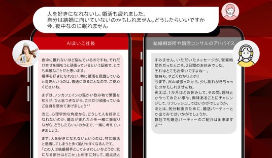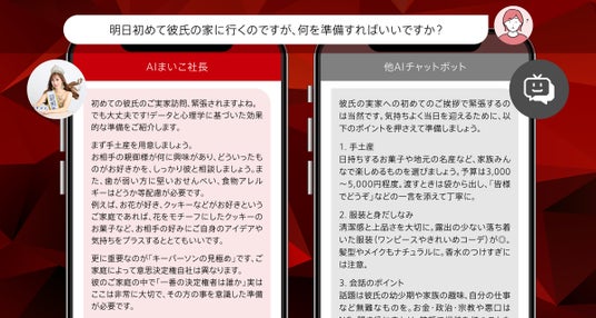 株式会社SMART BRIDAL(本社:東京都中央区・千葉県柏市、代表取締役:吉野 麻衣子)は、ミセスコンテスト世界大会で日本人初優勝を果たした代表の脳内思考を完全再現した、世界初※となるAI婚活パートナー「AIまいこ社長」を本日リリースしたことをお知らせいたします。