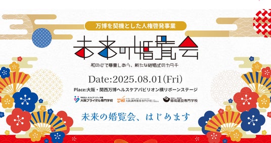 大阪ブライダル専門学校(学校法人 ホスピタリティ学園)、大阪調理製菓専門学校 ecole UMEDA(学校法人 村川学園)、修成建設専門学校(学校法人 修成学園)の3校が連携し、大阪府人権局が主催する「万博を契機とした人権啓発事業」内で開催する「未来の婚覧会 ~和のこころで尊重しあう、新たな結婚式のカタチ~」の詳細が決定いたしましたので、お知らせいたします。本企画は、普遍的な愛の誓いである結婚を、個人の尊厳(人権)を尊重し、多様な価値観を認め合う社会における「平和」の象徴として捉え、未来の結婚式の形を提案するものです。日本の伝統的な「和のこころ」を基盤としつつ、形式にとらわれない自由な発想で、互いを尊重し、誰もが祝福される新たな結婚式のあり方を、大阪・関西万博という国際的な舞台から発信します 。この度、開催日時、挙式カップルの決定、イベントロゴの完成、そして特設サイトの公開が決定しました。