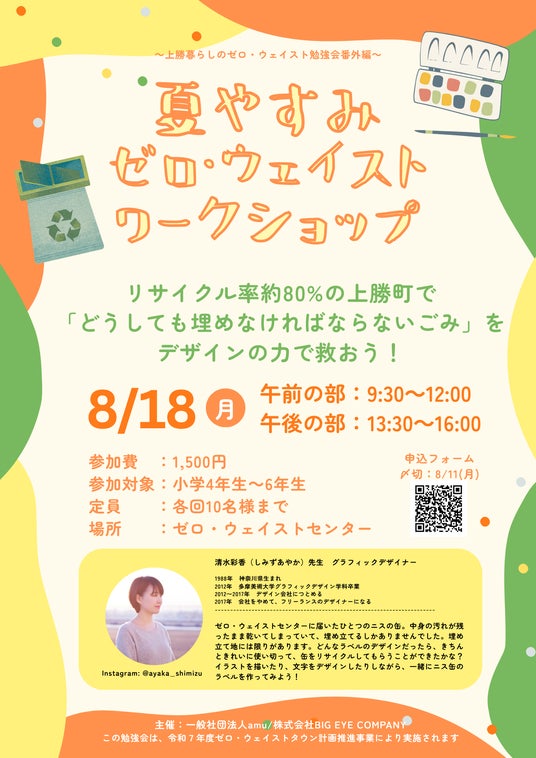 講師として招かれるのは、デザイナー・清水彩香氏。子どもたちの自由な発想を引き出しながら、日常的に目にするパッケージを素材に、再利用・分別しやすい形や、捨てたくなくなるデザインについて考えます。