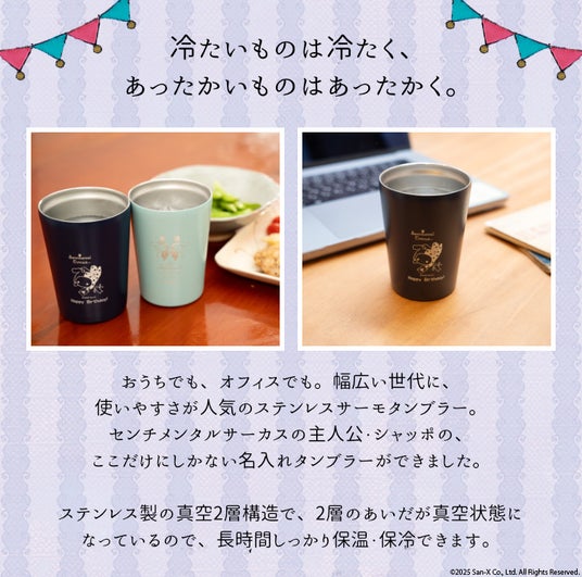 キャラクターグッズを企画・販売する株式会社岡田商会(所在地:大阪府大阪市)は自社オンラインショップにて、サンエックスの人気キャラクター「センチメンタルサーカス」の団長・シャッポをあしらった、名入れしてオリジナルが作れる真空断熱タンブラー『センチメンタルサーカス 名入れタンブラーコレクション』の販売を開始しました。