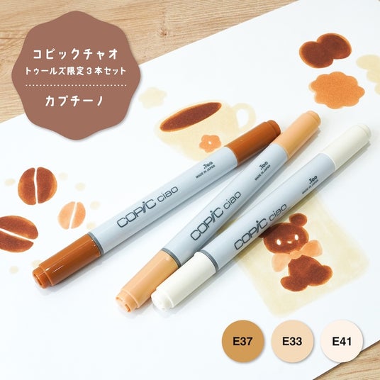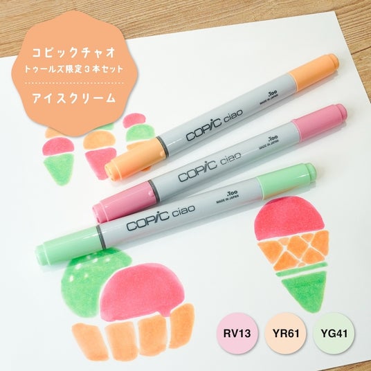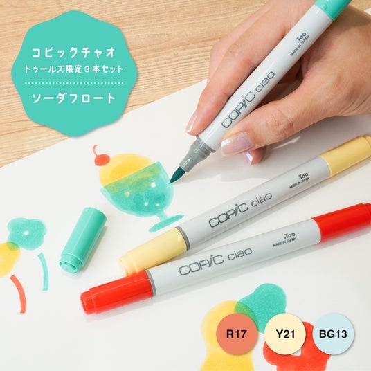 いずれも3色だけで手軽にかわいいイラストを描くことができる簡単レシピ付きで、コピックチャオを初めて手に取る方へのちょっとしたお土産やプレゼントにも最適です。