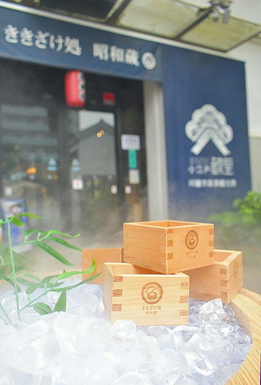ききざけ処昭和蔵の店頭には、実際に使用されていた酒樽を使ったオブジェを設置。