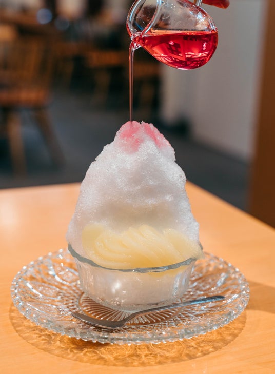 クラカフェ かき氷白桃 たっぷりのシロップを添えて