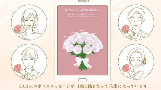 1人1人のボイスメッセージが、1輪1輪となって花束になっています。