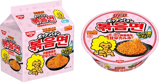 チキンのうまみとコチュジャンの風味、チーズのまろやかなコクをきかせた"韓国風甘辛カルボ味"。フライパン調理で香り高く仕上がる「日清焼そば ポックンミョン 韓国風甘辛カルボ 5食パック」と、「U.F.O.」ならではの"ぶっ濃い"味わいを楽しめる「日清焼そばU.F.O. ポックンミョン 濃い濃い韓国風甘辛カルボ」は、どちらも甘さと辛さのバランスが絶妙なクセになるおいしさです。