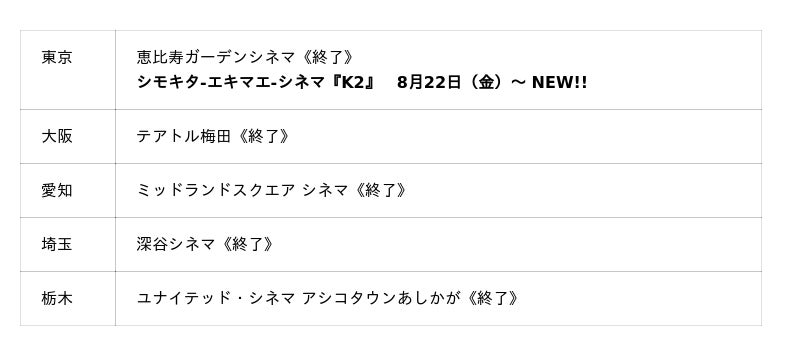 【劇場】シモキタ - エキマエ - シネマ『K2』