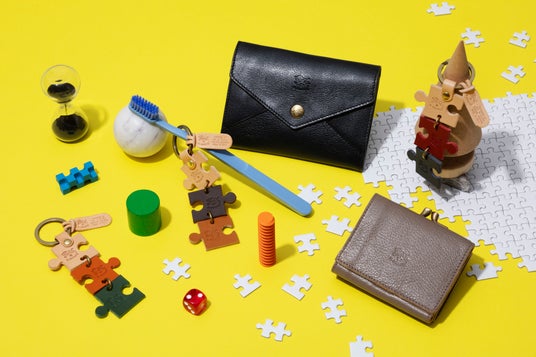 スモールレザーグッズは、カードケースを充実させた二つ折りウォレットやスマートキーケースといった機能性に注目の新作のほか、大切な人とペアで持つと実際につなげられるジグソーパズルキーリングなど、笑顔を誘うアイテムも。