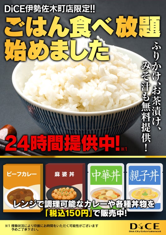 昨今お米の価格が高騰し、日々の食事にも不安を感じる声が増えつつある今、ネットカフェ「DiCE伊勢佐木町店」は、少しでもお客様の心とお腹を満たしたいという想いから、