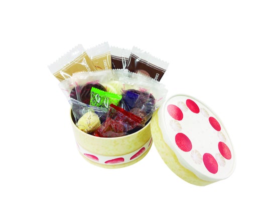 詰め放題BOX(直径:約12cm)※画像はイメージです。実際の内容と異なる場合がございますので、ご了承ください。※詰め放題のチョコレート・お菓子は個包装された商品のみです。