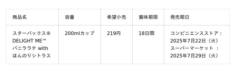 スターバックス(R) チルドカップに新たなシリーズが登場「スターバックス(R) DELIGHT ME(TM) バニララテ with ほんのりシトラス」7月22日(火)より期間限定発売