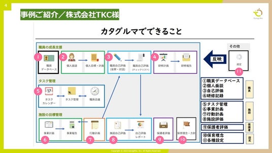 株式会社カタグルマ(本社:東京都千代田区、代表取締役:大嶽広展)が提供する人材育成・組織運営支援システム「KatagrMa(カタグルマ)」について、株式会社TKC様(本社:東京都稲城市 代表取締役:田中孝太郎、以下 TKC様)による活用事例を紹介いたします。