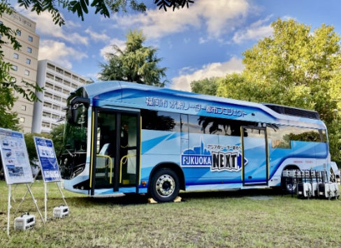 福岡市が取り組む「水素リーダー都市プロジェクト」とコラボし、水素で走る燃料電池バス『Moving e』を無料シャトルバスとして運行します!また、『Moving e』から、水素で発電したクリーンな電力を冒険プール会場に供給します。