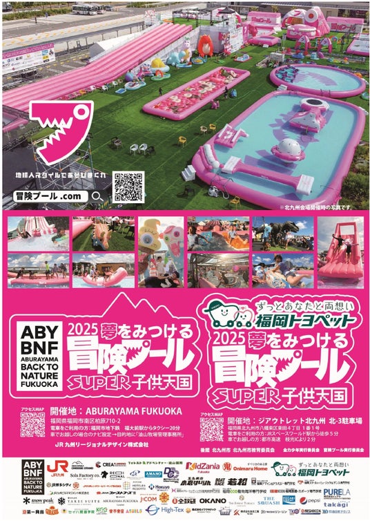 開催まであと5日!ABURAYAMA FUKUOKA『冒険プール』の会場レイアウトがいよいよ解禁となりました!さらに、水素で走る燃料電池バス「Moving e(ムービング イー)」による無料シャトルバス運行やイベント限定のお食事、お得に楽しむアウトドアアクティビティ等、最高の夏休みを過ごす追加コンテンツが 盛りだくさんです。
