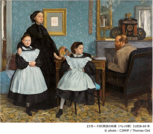 本展のポスターピースでもあるドガの《家族の肖像(ベレッリ家)》に着想を得た、静謐なブルーが印象的です。