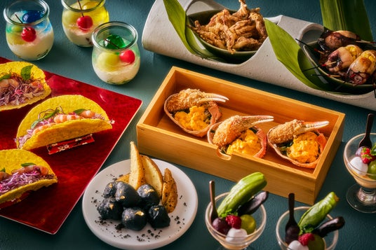 当日のイベントでは、"ラグジュアリーな夏祭り"をテーマにシェフやバーテンダーが考案したメニューをお選びいただけます。蟹甲羅に盛り付けた焼きそばやクリームソーダのヴェリーヌ、涼を感じるかき氷やアイスのカクテルなどをダンスと共にお楽しみいただけます。