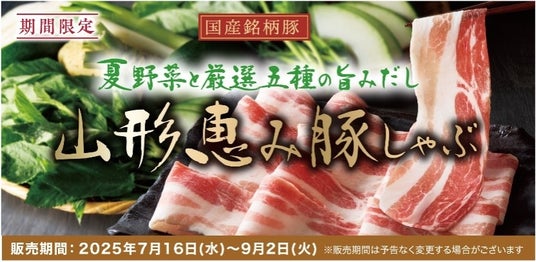 夏鍋第二弾として「夏野菜と厳選五種の旨みだし 山形恵み豚しゃぶ」を2025年7月16日(水)より期間限定で展開します。人気の"夏鍋"をぜひお召し上がりください。