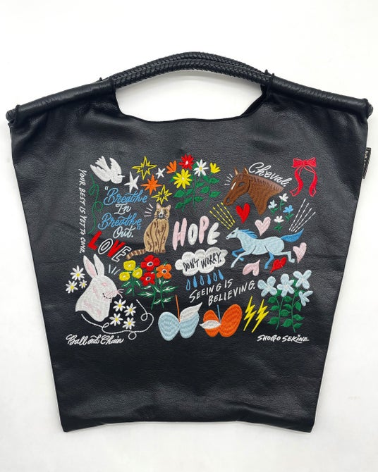 コーディネートへの馴染みが良く、使うたびにワクワクする、おしゃれなショッピングバッグをご紹介。アーティスト・セキネショウゴ氏とのコラボは、色とりどりの花や植物、動物達がリアルなタッチで刺繍され、テイスト問わずコーディネートできるデザインが魅力です。グレードアップした上品な素材感のウォッシャブルレザーが初お披露目です。