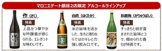 日本酒などの「マロニエゲート銀座2店」限定のアルコールが飲み放題となる、プレミアムラインが新設。16時までは2,199円(税込2,419円)、16時以降も2,399円(税込2,639円)でお楽しみいただけます。