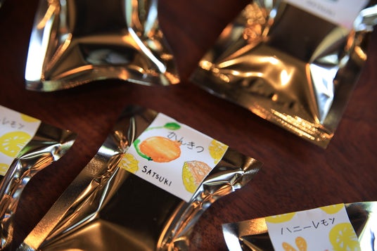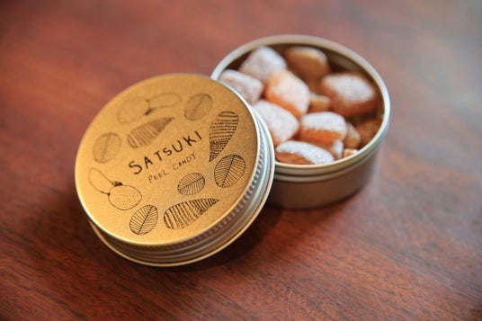 柑橘のピールキャンディ。「SATSUKI」ブランドを代表する缶のイラストがプリントされています