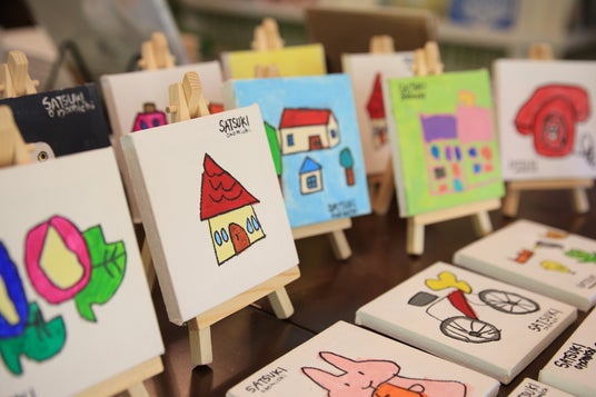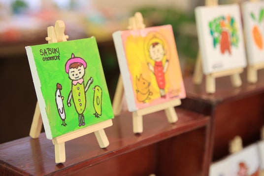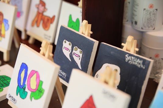 広島県世羅町「森と花の絵本ミュージアムGardenLei」にて、尾道さつき作業所さんのアート作品を展示中です。ミニキャンパスに描かれた優しい世界観とポップな色使いの絵は、見ているこちらが温かい気持ちになるような作品ばかりです。ショップにて展示販売を行っています。どれも一点ものですのでお気に入りを見つけにお越しください。