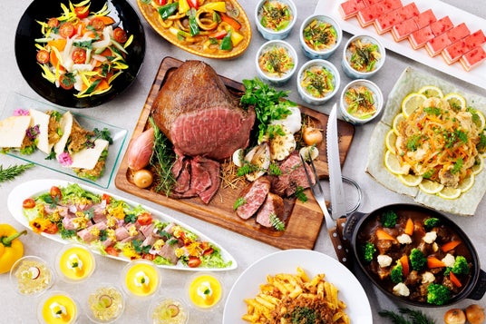 ステーキやローストビーフ以外のサイドメニューも全てお好きなだけ召し上がりいただけます。天ぷらや柔らかく煮込んだ牛肉の赤ワイン煮込みほか、お口直しにもぴったりなマンゴープリンやアイスキャンディーなど20種類以上をご用意します。豊富なラインアップで、お子様からご年配のお客様まで幅広い世代でお楽しみいただけます。