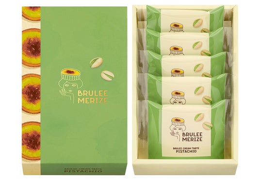 パリとろ食感が香ばしい代表作『ブリュレクリームタルト』がピスタチオ味に!芳醇なイタリア産ピスタチオペーストをたっぷり溶けこませたなめらかなクリーム。さくっと焼いたココットタルトに流し込み、直火でパリッと香ばしくブリュレしました。クリームの中に潜むほろ苦いキャラメルソースが隠し味です。"ブリュレ"というひと手間が、ローストピスタチオ本来の香ばしさをさらに美味しく高めた季節限定のピスタチオ味をどうぞお楽しみください。