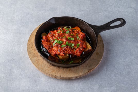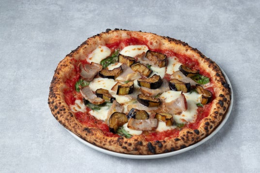 とろけるような堺産の長なすに、旨味を凝縮したタコのラグーソースを重ね、薪窯で香ばしく焼き上げた一皿。