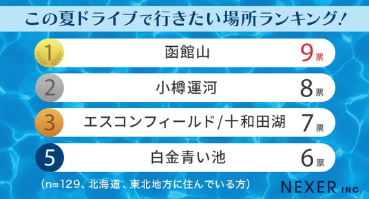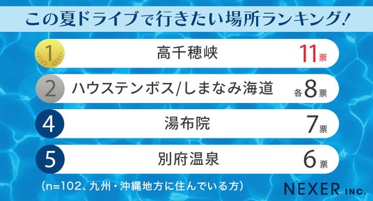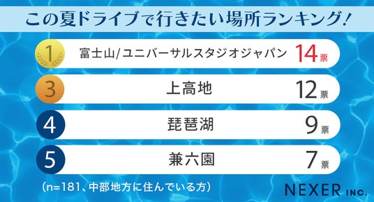 株式会社NEXER・今年の夏にドライブで行きたい場所に関する調査