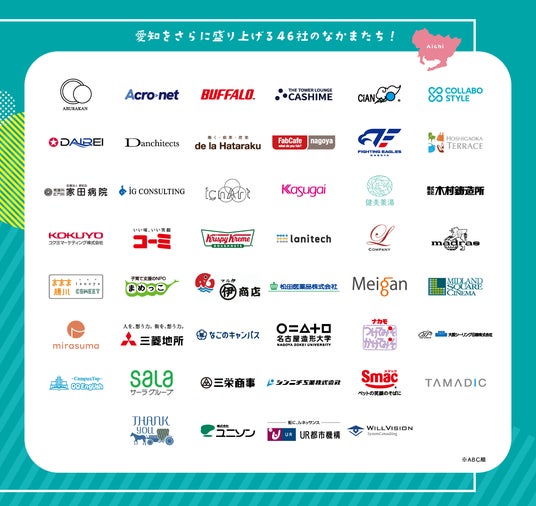 株式会社油勘、株式会社アクロネット、株式会社バッファロー、CASHIME、株式会社シアン、株式会社コラボスタイル、大冷工業株式会社、 Danchitects、株式会社de la hataraku、株式会社FabCafe Nagoya、豊通ファイティングイーグルス株式会社、東山遊園株式会社、医療法人愛知会家田病院、株式会社アイジーコンサルティング、株式会社ignArt、春日井製菓株式会社、健美薬湯株式会社、株式会社木村鋳造所、コクヨマーケティング株式会社、コーミ株式会社、クリスピー・クリーム・ドーナツ・ジャパン株式会社、lanitech合同会社、合同会社ライラ・カンパニー、マドラス株式会社、勝川エリア・アセット・マネジメント株式会社、認定NPO法人子育て支援のNPOまめっこ、マル伊商店株式会社、松田医薬品株式会社、名古屋眼鏡株式会社、中日本興業株式会社/ミッドランドスクエア シネマ、株式会社mirasuma、三菱地所株式会社、なごのキャンパス、名古屋造形大学、ナカモ株式会社、大阪シーリング印刷株式会社、株式会社QQ English、サーラグループ、三栄商事株式会社、シンニチ工業株式会社、株式会社スマック、株式会社タマディック、株式会社サンテフレスコ、株式会社ユニソン、独立行政法人都市再生機構、株式会社ウィルビジョン