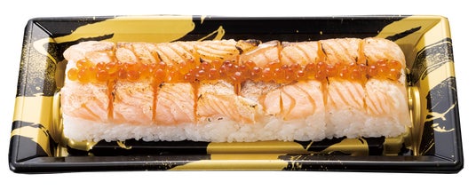 脂ののったとろサーモンを軽く炙り、いくらをのせた大人気商品!