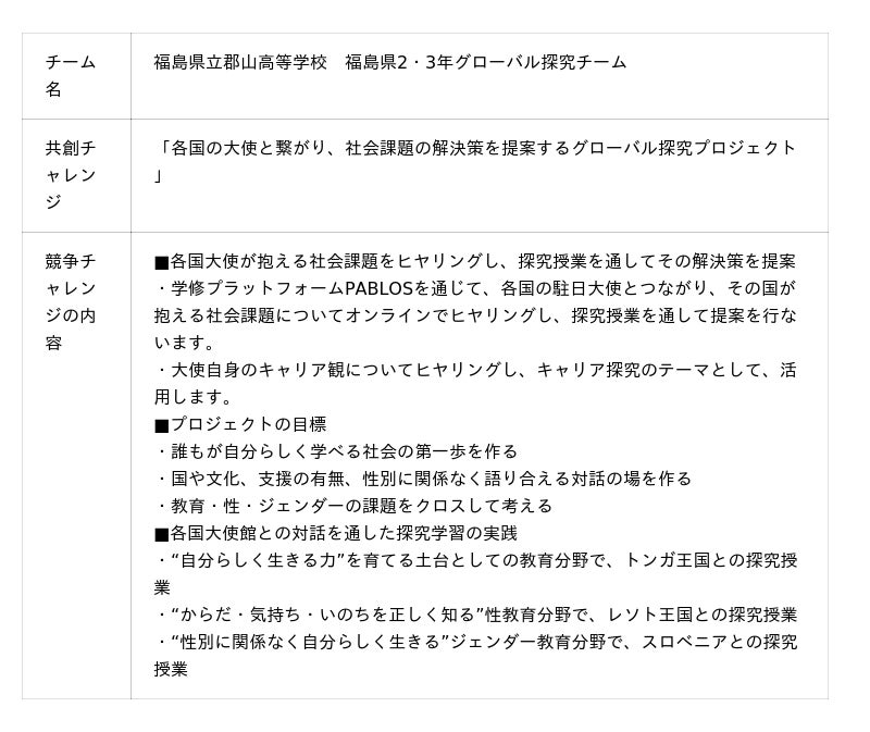福島県郡山高校、各国大使と繋がり、社会課題の解決策を提案。トンガ王国、レソト王国、スロベニアと、ジェンダー教育分野などで探究授業提供