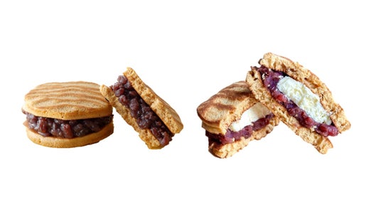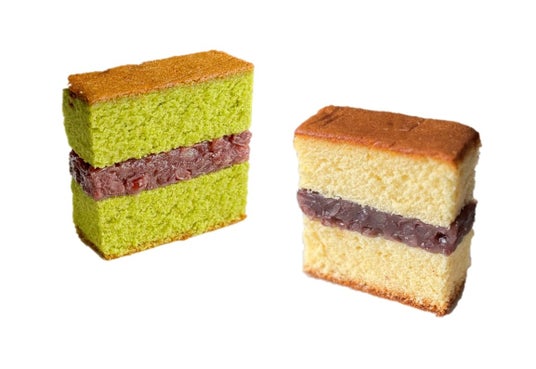 昔ながらの"シベリア"を現代風にアレンジした定番商品(右)に西尾抹茶を加えた逸品。
