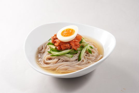 冷麺(790円)さっぱりなのにコクがある牛だしスープが特徴の本格韓国冷麺です。コシが強く、つるんとしたのど越しの韓国麺が、スープにマッチします。暑い夏にのどごし最高なひんやり冷麺です。