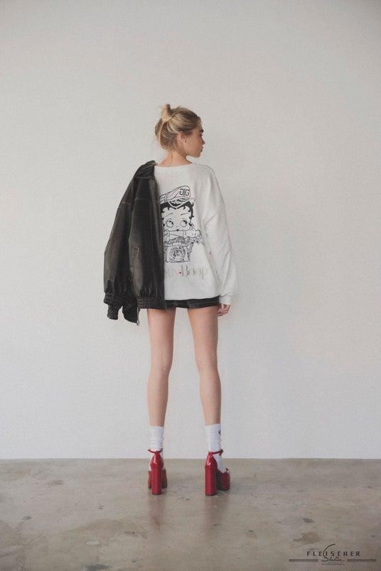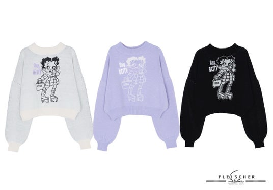 ベティーブープ(TM)は、1930年8月9日にアメリカでリリースされたアニメーションDizzy Dishesに初めて登場しました。主人公であるビンボーの憧れの人というただの脇役でしたが、その後の数年間で瞬く間に人気を集め、女性のアニメーションスターとして全米を魅了するまでになりました。現在もファッションアイコンとして、ティーンからセレブまで男女問わず、世界中で愛され続けています。カジュアルな少女からゴージャスな大人の女性まで変幻自在なベティーはファッションカテゴリーにとどまらず、アーティスト、ミュージシャンとのコラボレーションも好評で、益々活動の場を広げています。