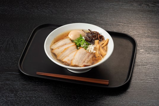 当店手作り自慢のチャーシュー・味玉を倍増させ、ラーメンには人気のトッピングであるキクラゲを加えました。玉ねぎのみじん切りをアクセントにしています。